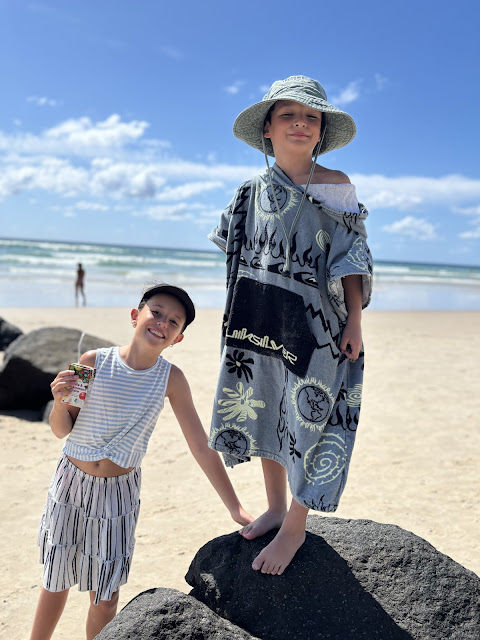 Over the Easter school holidays we had a mix of weather - some rainy days mixed with sunny, warm, very pleasant temperatures. We took advantage of the sunny days to spend some time at the beach. At this stage in our Gold Coast lives, I'm not sure how far into the autumn we will still be swimming at the beach. As I finish off this post, its the end of April, and still warm enough for a beach trip. Not bad considering winter is only a month away!